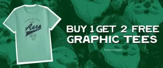 Hurry in and save! Shop in store and enjoy our buy 1, get 2 free on graphic tees.