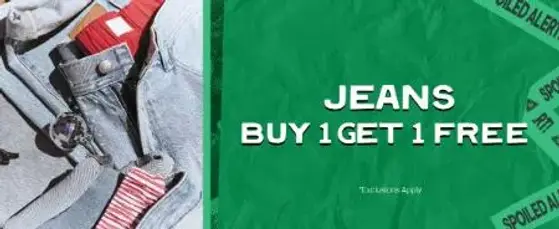 Limited time only! Shop in store and get buy 1, get 1 free jeans.