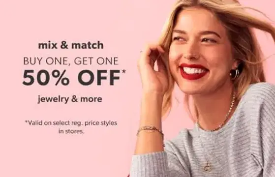 Don't miss out! Shop in store and enjoy buy one, get one 50% off jewelry & more.