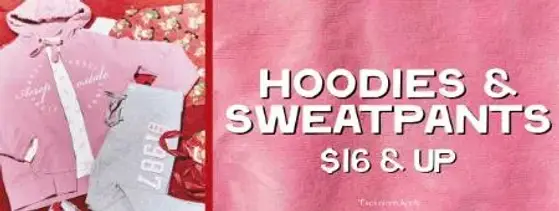 Limited time only! Shop in store and get hoodies & sweatpants for $16 & up.