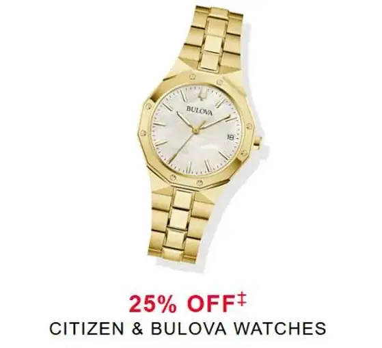 Don't miss this! Shop in store and get 25% off Citizen & Bulova watches for a limited time.