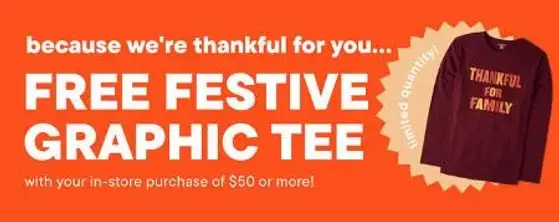 Shop in store and get a free festive graphic tee with $50+ purchase.