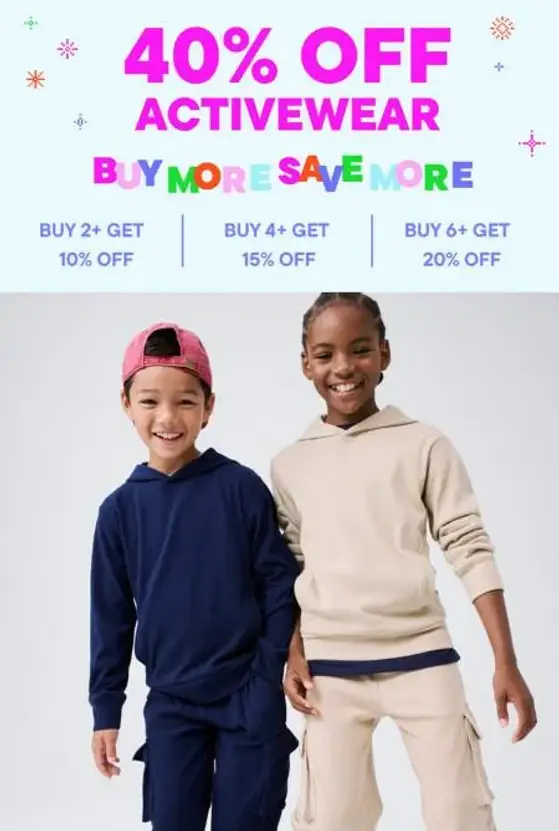 Shop in store and take up to 20% off when you buy six (6) or more eligible activewear styles.