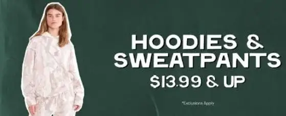 Save now! Shop in store and get $13.99 & up on hoodies & sweatpants.