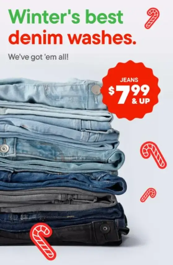 Limited time only! Shop in store and get $7.99 & up n jeans.